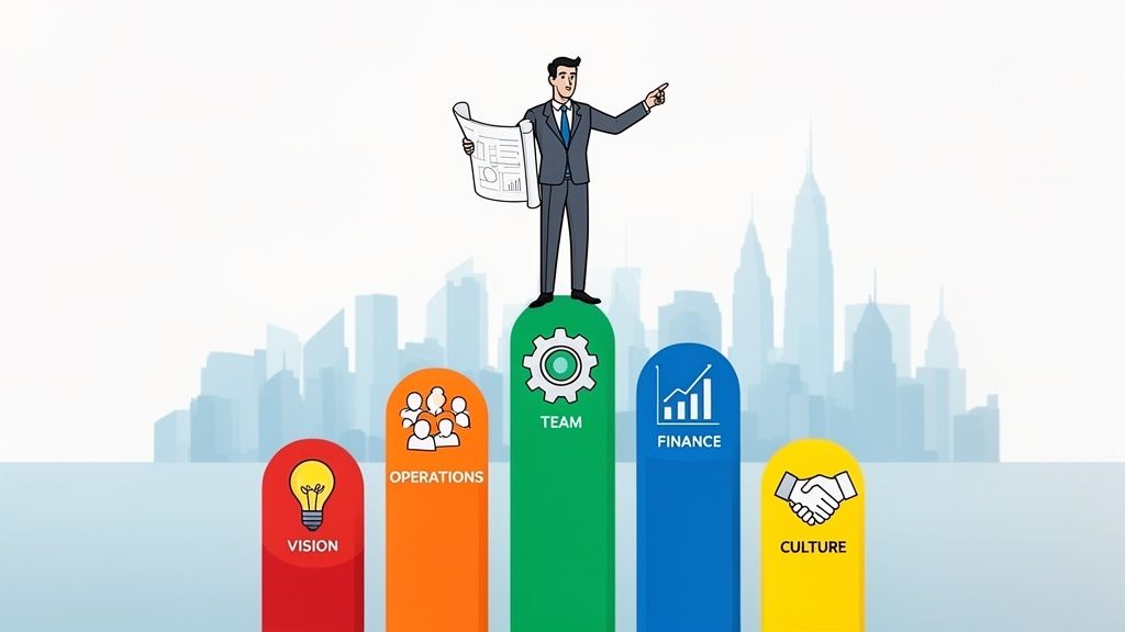 This goes beyond a catchy mission statement. It’s about creating and communicating a compelling "why" that energizes everyone, from the board to the newest hire. This vision becomes the ultimate filter for every decision. Does this product feature move us closer to our goal? Does this marketing campaign align with who we are? It keeps the entire organization pointed in the same direction.