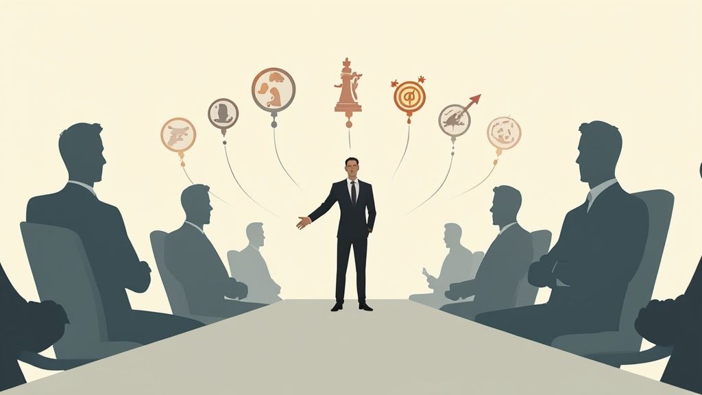 - Prepare High-Stakes Scenarios: Develop 8-10 detailed stories covering critical leadership domains. Think of examples like managing a product recall crisis, orchestrating a major acquisition integration, or leading a company through a difficult reorganization.