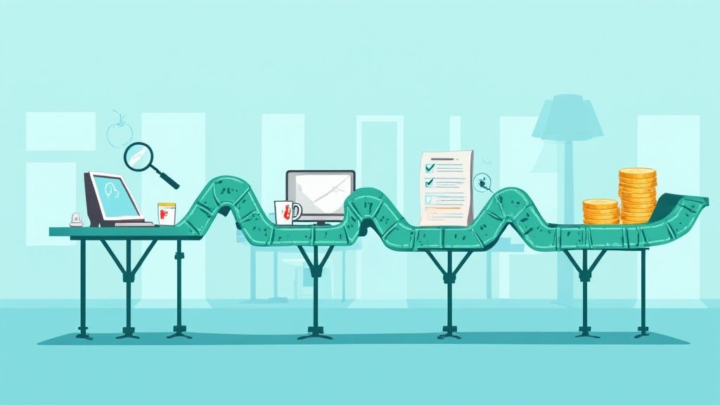 This assembly line analogy makes it clear why a structured pipeline is so valuable. If deals stall, you can pinpoint the exact stage causing the logjam. Perhaps your "Solution Demo" stage has a poor conversion rate. That’s a clear signal that your reps need better training or your presentation is falling flat. Without that visibility, you’re just flying blind.