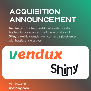 Kansas City, MO – October 1, 2025 – Vendux LLC (www.vendux.org), the pioneer provider of fractional executive sales leadership, today announced the acquisition of Shiny (https://useshiny.com/), a well-known platform connecting businesses with fractional executives across the C-Suite. Effective immediately, Vendux will assume full ownership of Shiny’s assets and will continue to operate the business under the Shiny brand.